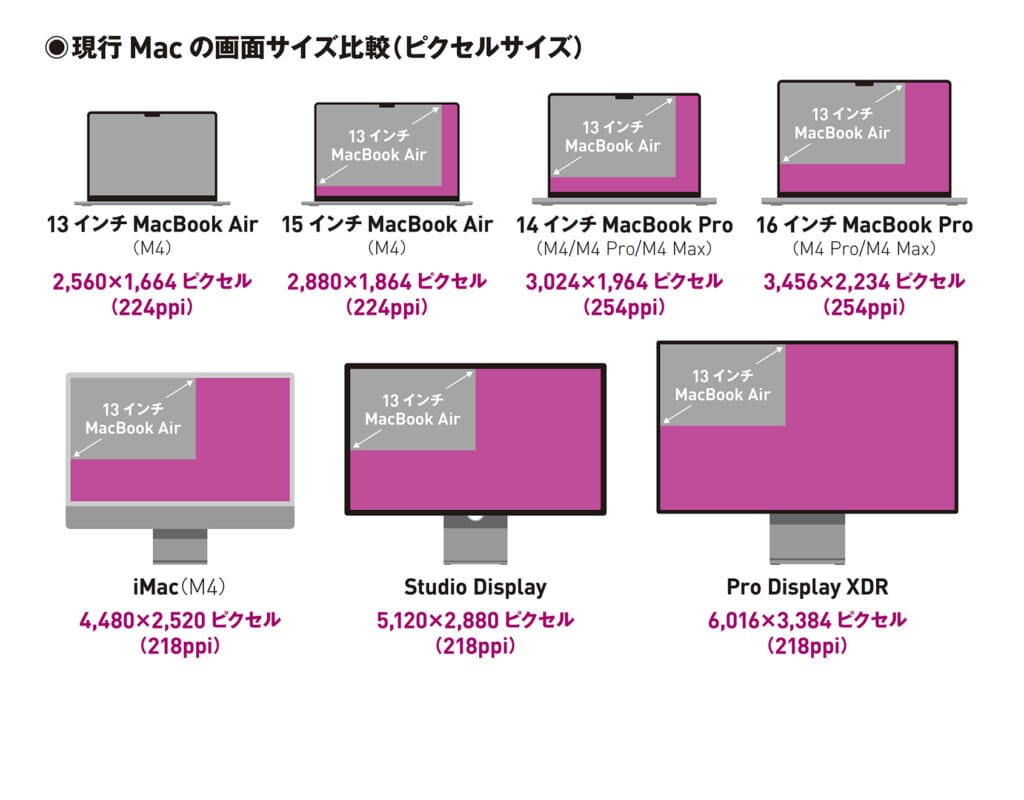 Macの画面のピクセルサイズ一覧